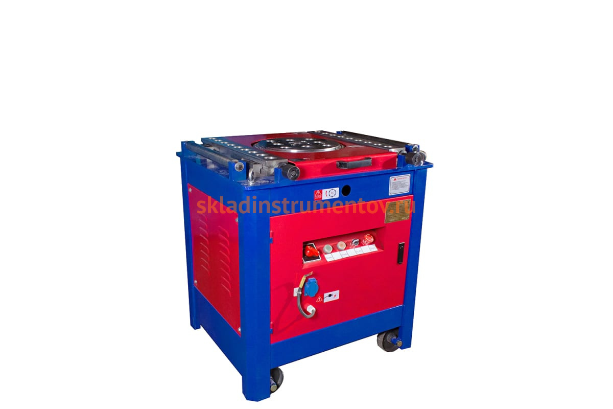 Станок для гибки арматуры VEKTOR GW-42SA представляет собой профессиональное оборудование, которое используется на строительных площадках и в домостроительных комбинатах. Комплектация включает в себя необходимые приспособления для сгибания арматуры под необходимым углом. Процесс гибки включает в себя поворот диска. Необходимый радиус изгиба достигается путем выбора определенных втулок и угла поворота диска. Простое управление позволяет свободно работать новичку. Допускается одновременное сгибание нескольких прутков арматуры. В этом случае диаметр одного прутка пропорционально уменьшается. Также диаметр зависит от типа стали. Для А240 максимальный диаметр составляет 42 мм, для А400 и А500 - 36 мм, для А500С - 32 мм. Удобство управления повышается за счет использования ножной педали. Преимуществом станка является возможность использования при температуре до -20 градусов.