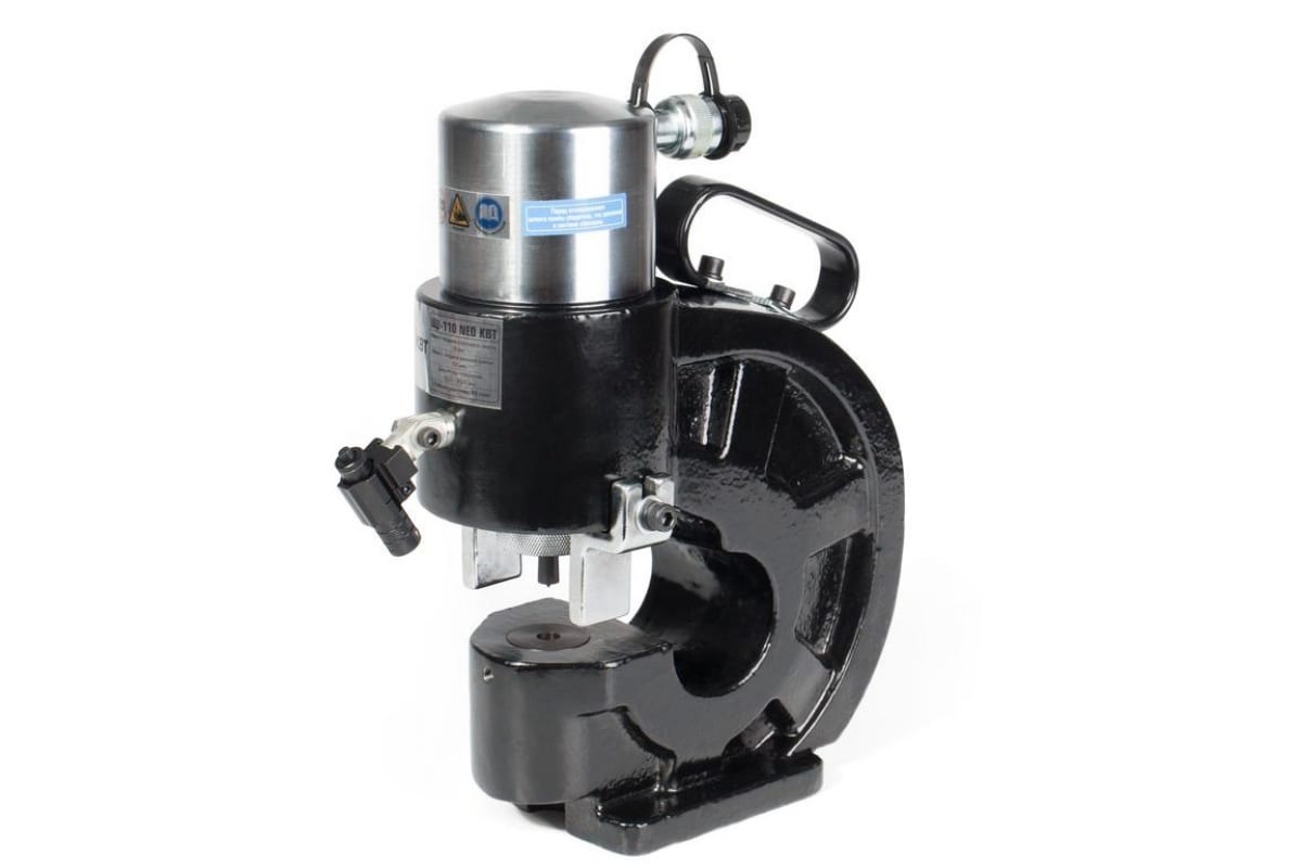 Гидравлический пресс для пробивки отверстий в шинах КВТ ШД-110 NEO 76507 служит для обработки деталей из металла и токопроводящих шин. Максимальная толщина пробиваемого материала - 12 мм для меди и алюминия, для стали - 8 мм. Максимальное усилие агрегата составляет 35 тонн. Устройство отличается простотой в эксплуатации, предварительное высверливание отверстия не требуется. Пресс имеет возможность крепления к рабочему столу.