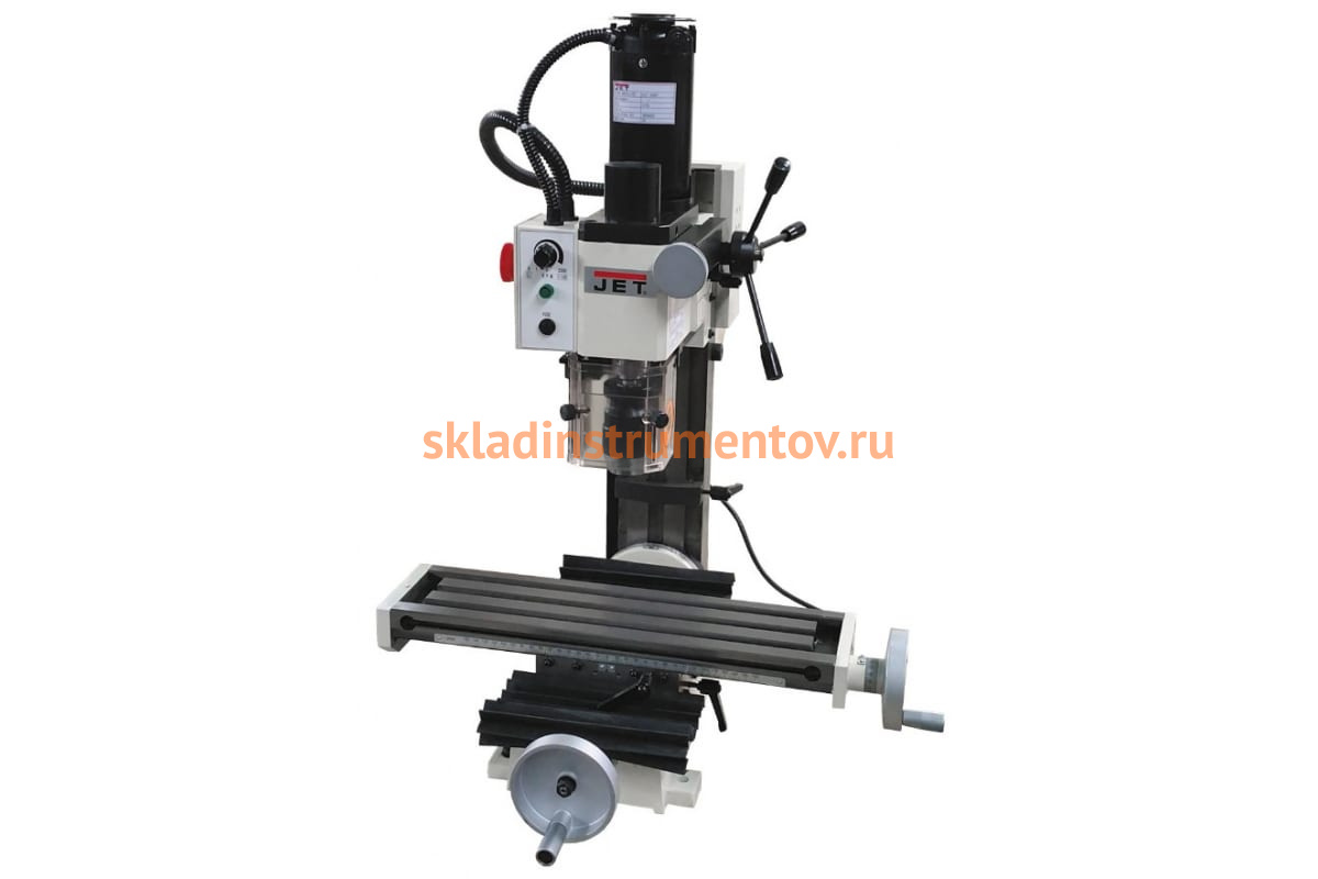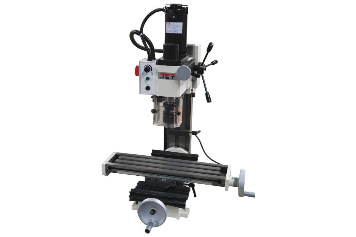 Фрезерно-сверлильный станок JET JMD-1L 50000045M представляет собой современное оборудование для выполнения работ по металлу. Для удобства оператора основные элементы управления вынесены на переднюю панель агрегата. Есть кнопка аварийного отключения. Коллекторный двигатель машины имеет плавную регулировку числа оборотов для аккуратного выполнения работ по сверлению и фрезеровке в наиболее подходящем режиме. Корпус агрегата выполнен из серого чугуна, что снижает уровень вибрации в процессе эксплуатации.
