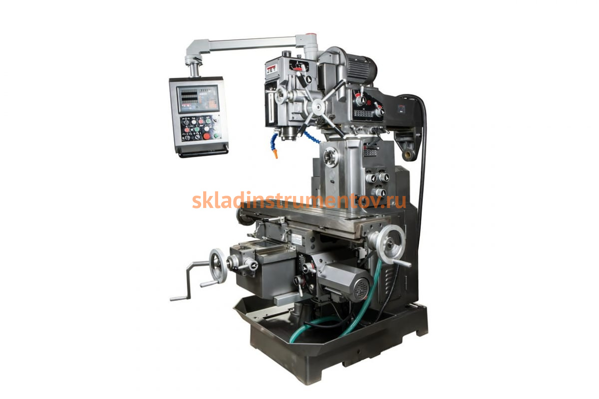 Универсальный фрезерный станок Jet JMD-26X2 XY DRO оснещен системой двух шпинделей: горизонтальным и вертикальным. Это позволяет обрабатывать заготовку сразу в двух плоскостях, что значительно сокращает количество затрачиваемого времени на всю работу.