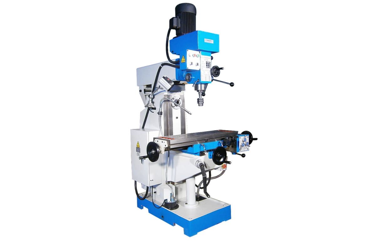 Широкоуниверсальный фрезерный станок METALMASTER DMM 7550 CW используется в цехах по изготовлению металлоконструкций. Оборудование применяется для сверления глухих и сквозных отверстий, а также для торцевого и концевого фрезерования металлических заготовок. Функция поворота фрезерной головки и возможность изменять направление вращения шпинделя расширяют возможности станка, позволяя выполнять более сложные работы. Для точного изменения параметров обработки (переключение скоростей вращения, перемещение рабочего стола, подача пиноли) на корпусе расположены соответствующие шкалы и таблицы. Рабочие узлы скрыты под металлическим корпусом, что защищает их от механического повреждения. Станок оснащен кнопкой аварийного отключения для экстренной остановки работы в случае необходимости.