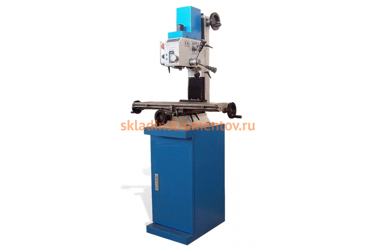 С боковой части фрезы располагается фиксатор пиноли. Для установки прижимного и вспомогательного оборудования предусмотрены Т-образные пазы. Вместительная тумба с запирающейся дверцей предусмотрена для хранения оснастки и подручного инструмента.