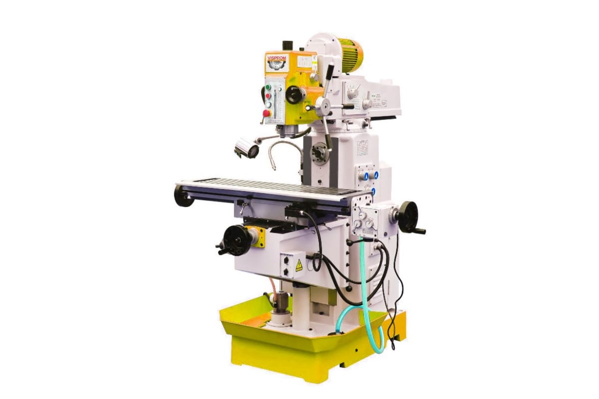 Универсальный фрезерный станок VISPROM FVX-125W с УЦИ 22103500 используется для обработки заготовок, материалом которых служит пластик или металл. Точная подача шпинделя делает возможным выполнение операций высокой степени сложности. Модель находит применение в разнообразных ремонтных мастерских, на малых и крупных серийных производствах каркасных конструкций и прочей продукции. Помимо фрезерования оборудование используется для нарезания резьбы (максимальный размер - М16). Подвижная пиноль обеспечивает простую и быструю регулировку расстояния от шпинделя до стола в диапазоне 80-460 мм для удобства работы с заготовками разной высоты. Скорость вращения вертикального шпинделя настраивается в диапазоне от 67 до 2010 об/мин, горизонтального - от 38 до 1310 об/мин. Ход вертикального шпинделя составляет 120 мм. Есть возможность выбора одной из 3 возможных скоростей подачи вертикального шпинделя: 0.1, 0.15 или 0.3 мм/об. Расстояние между Т-образными пазами рабочего стола равняется 63 мм.