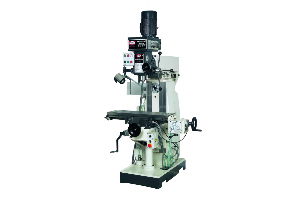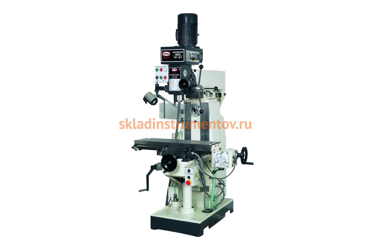 Универсальный фрезерный станок Proma FHV-50P 25330050 предназначен для точной обработки металлических заготовок. С помощью станка можно выполнять такие операции как: проточка, сверление, обработка кромок, развертка. Станок имеет девять ступеней вращения шпинделя при горизонтальной обработке и восемь ступеней при вертикальной обработке, что увеличивает эффективность обработки деталей.
