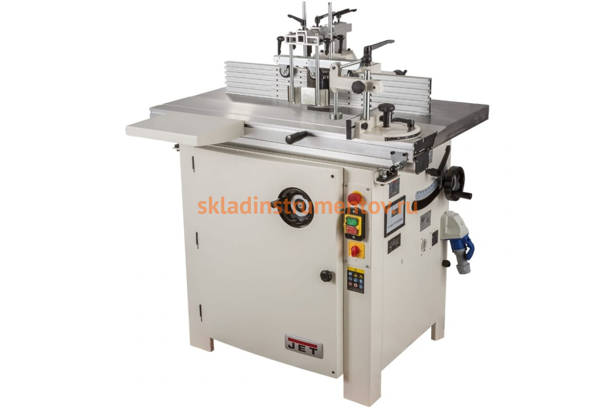 Фрезерный станок с кареткой JET JWS-2600 10000790T широко применяется в деревообрабатывающей промышленности. Ременной привод позволяет выставлять 4 скоростных режима - 1800 об/мин, 3000 об/мин, 6000 об/мин и 9000 об/мин - для фрезерования заготовок различной твердости. Верхний прижим оснащается обрезиненными роликами, что обеспечивает его плавный ход и препятствует изнашиванию подвижного механизма. Точная настройка положения упоров осуществляется при помощи вращающихся рукояток. В конструкцию агрегата входит вращающийся штурвал для регулировки наклона шпинделя в диапазоне от -5 до +45 градусов. Каретка (размер - 1000х240 мм) с ходом до 1200 мм способствует удобной обработке габаритных деталей.