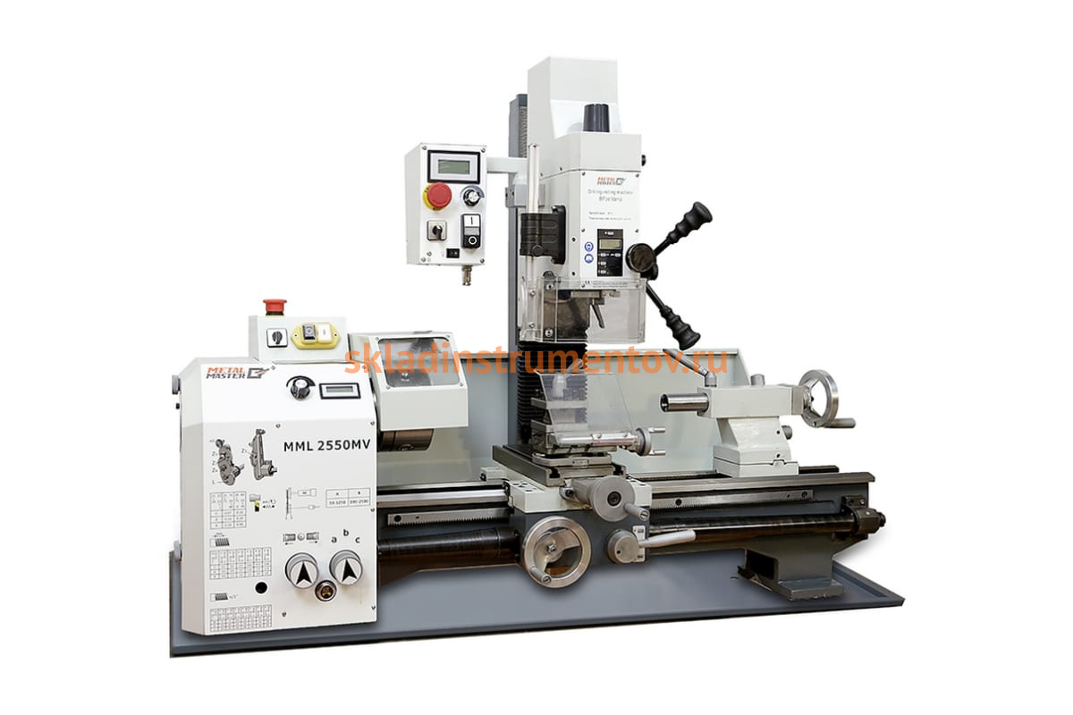 Токарно-фрезерный станок MetalMaster MML 2550 MV 15542 предназначен для нарезания метрической и дюймовой резьбы, обработки металлических деталей увеличенного размера (фрезерование, сверление, обточка поверхностей).