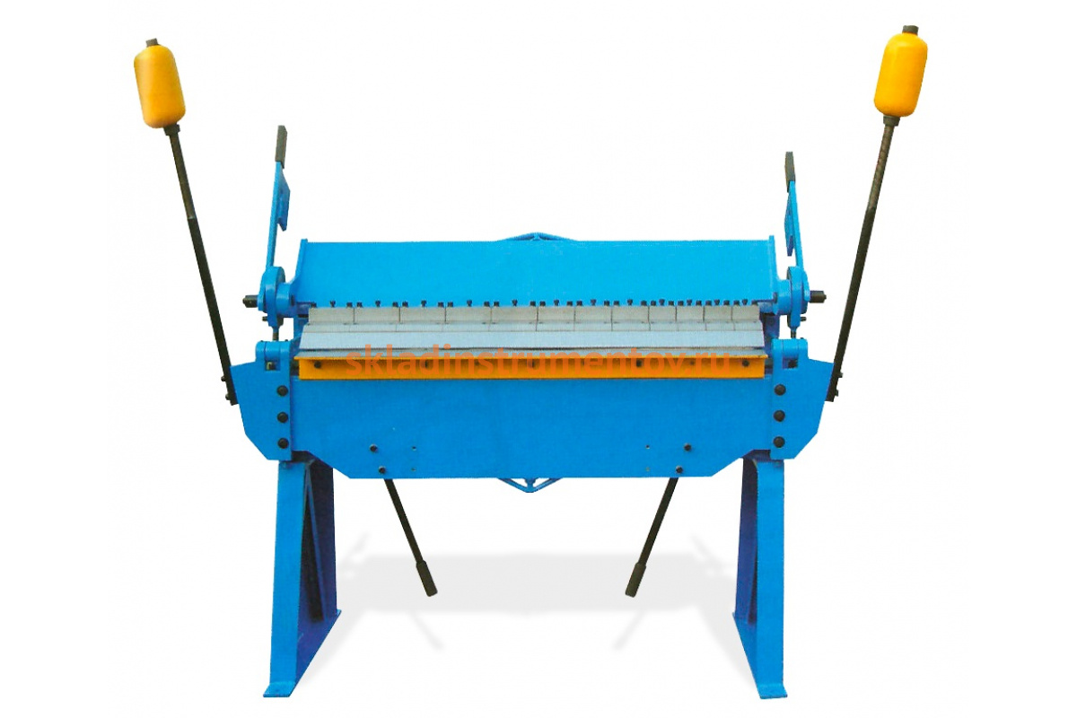 Станок имеет регулируемый компенсатор движения гибочной и прижимной балки, верхний сегментный нож, усиливающий уголок и дополнительные элементы жесткости. Прижим листового материала выполняется простым поворотом рукояти.