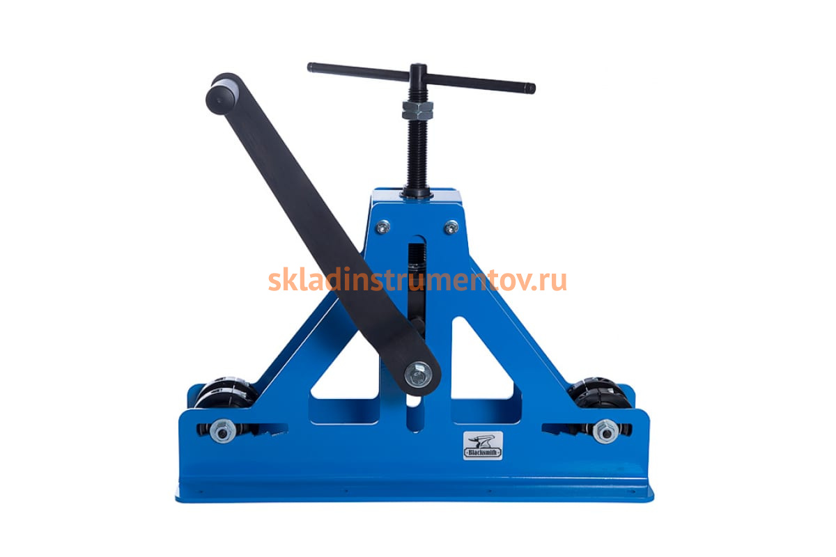 Ручной трубогиб Blacksmith MTB10-40 используется на производствах металлоконструкций, а также в строительстве для гибки стальных труб по радиусу круглого (оправки приобретаются опционально) и прямоугольного профиля. Простота эксплуатации делает трубогиб подходящим инструментом даже для человека, не имеющего специальных навыков. Прокатка трубы выполняется за несколько циклов с промежуточной затяжкой центрального ролика. Передача - ручная (не цепная).