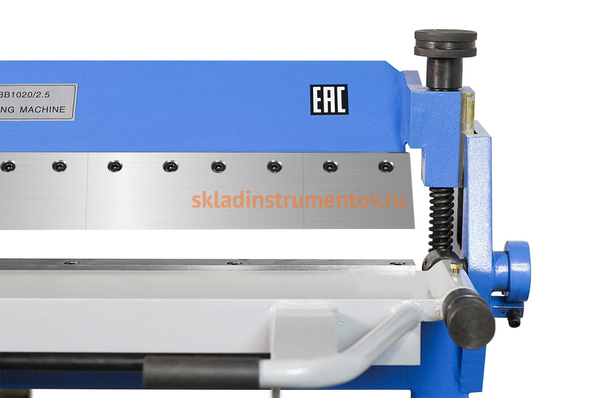Листогибочный станок с ножным и ручным управлением Blacksmith PBB1020/2,5 применяется для формирования металлических профильных конструкций: коробов, поддонов, вентилируемых фасадов. Пружинная балка управляется при помощи ножного привода или рукоятки - в первой случае руки остаются свободными. Прижим имеет сегментную форму и состоит из 11 частей: 25 мм, 30 мм, 35 мм, 40 мм, 45 мм, 50 мм, 75 мм, 100 мм, 150 мм, 200 мм, 270 мм.