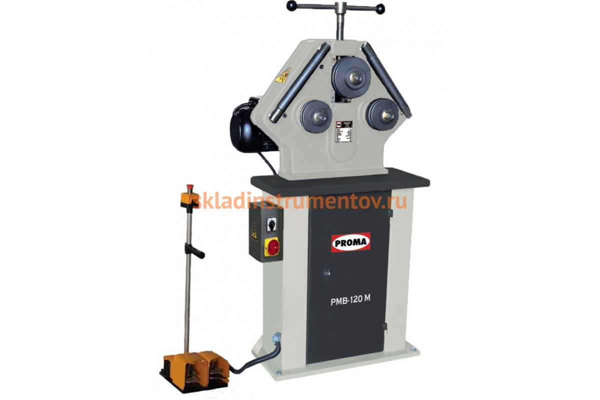 Профилегибочная машина PROMA PMB-120M 125000-1 используется на производстве металлоконструкций для гибки труб различного профиля, а также прутков, уголков, Т-образного профиля. Станок имеет электропривод для прокручивания заготовки, что значительно снижает физическую нагрузку оператора. Большая производительность обусловлена двумя скоростями вращения электродвигателя, что дает возможность быстро прогонять заготовки малой толщины.