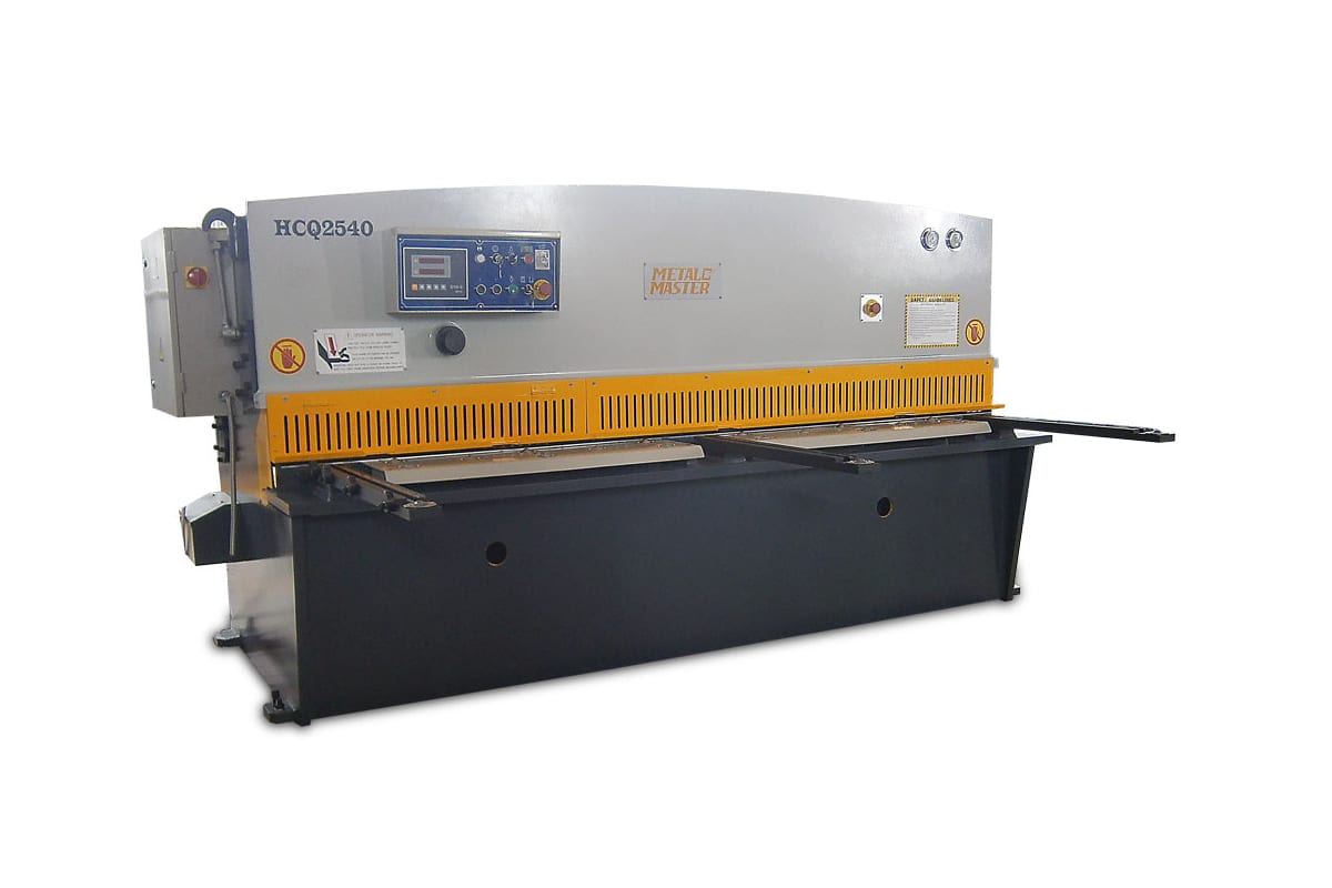 Гидравлическая гильотина с поворотной балкой METALMASTER HCQ 2540 надежное оборудование, предназначенное для резки листового металла. Высокую точность реза обеспечивает специальная конструкция ножниц при которой верхняя балка при совершении реза движется по дуге. Работа осуществляется электрическим двигателем мощностью 4 кВт. Полиуретановое покрытие гидравлических прижимов предотвращает повреждения поверхности материала. Ножное управление гарантирует удобство эксплуатации, а наличие ограничителей дает возможность точно позиционировать заготовку.