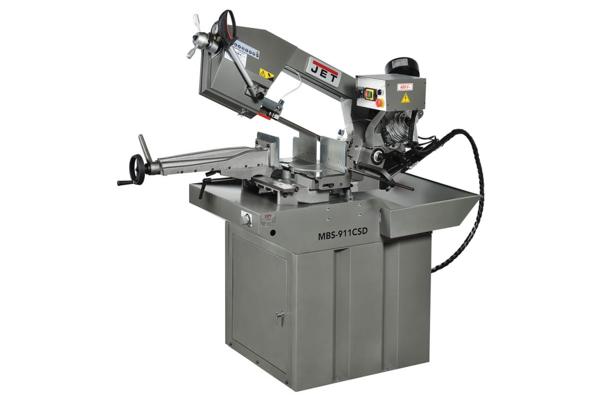 Ленточнопильный станок по металлу JET MBS-911CSD 50000431T - современный профессиональный агрегат с возможностью как единичного, так и серийного производства различных металлических заготовок. Благодаря возможности выбора скорости пиления (37 м/мин или 76 м/мин) обеспечивается аккуратный и качественный рез материала. Установка имеет значительный вес и отличается устойчивосью к вибрациям. Поворот пильной рамы под углом до 60 градусов расширяет возможности применения станка. Оборудование обрабатывает заготовки различной толщины благодаря регулирующимся губкам.