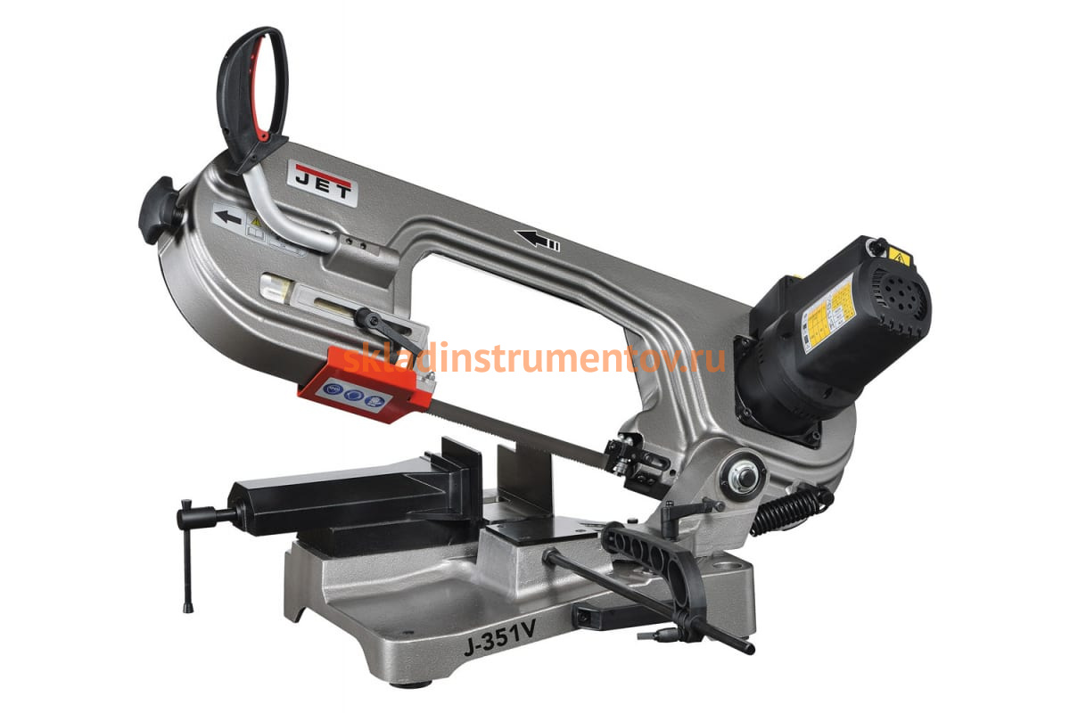 Ленточная пила по металлу JET J-351V 50000336M оснащается частотным преобразователем, благодаря которому возможна плавная регулировка скорости вращения пильной ленты. Рама наклоняется на угол до 60 градусов и легко фиксируется в любом из выбранных положений, что существенно расширяет сферу применения агрегата. В конструкцию оборудования входят тиски с прочными губками из чугуна, которые исключают смещение заготовки в процессе распила.