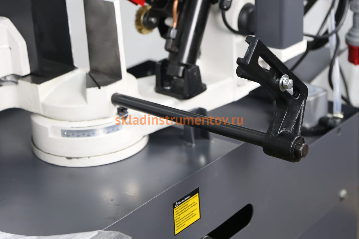 На выходе получаются изделия с чистым и ровным резом без дополнительного шлифования. Стационарные тиски с механизмом быстрой фиксации отвечают за надежное закрепление заготовки на станке и приводятся в движение специальным маховиком.