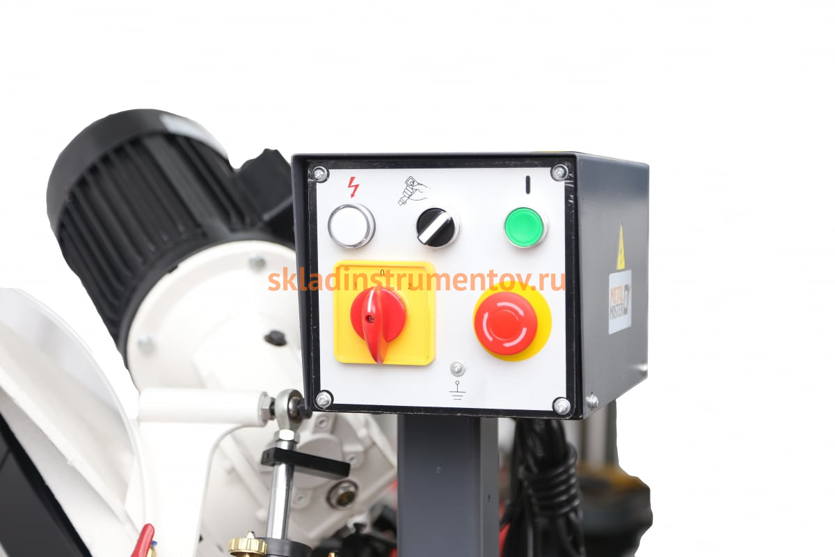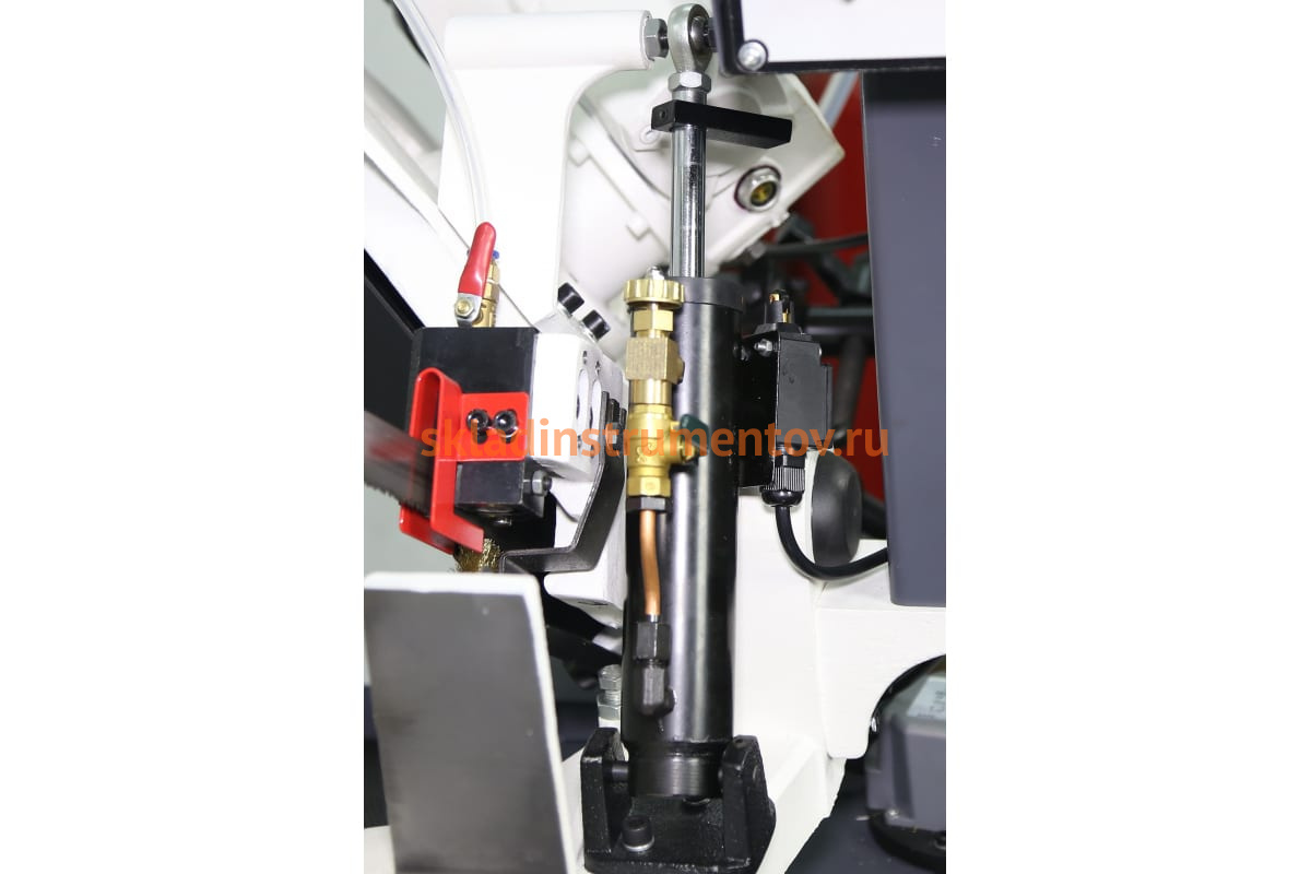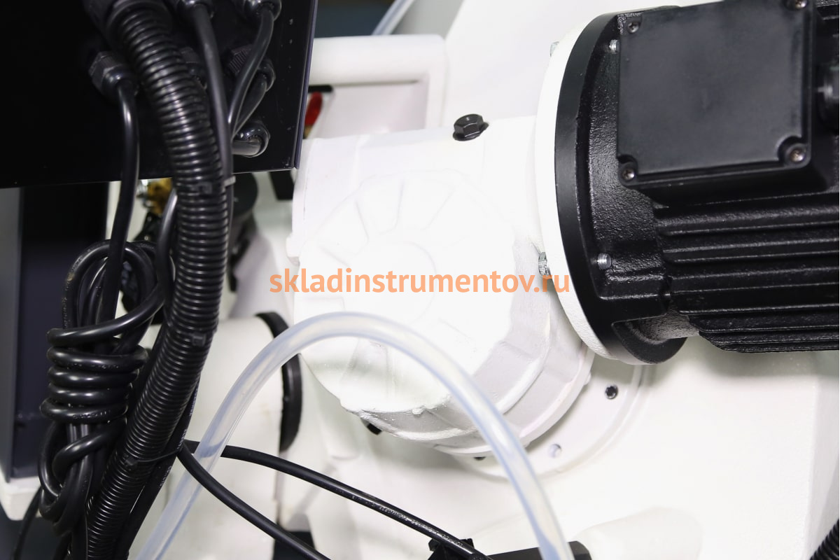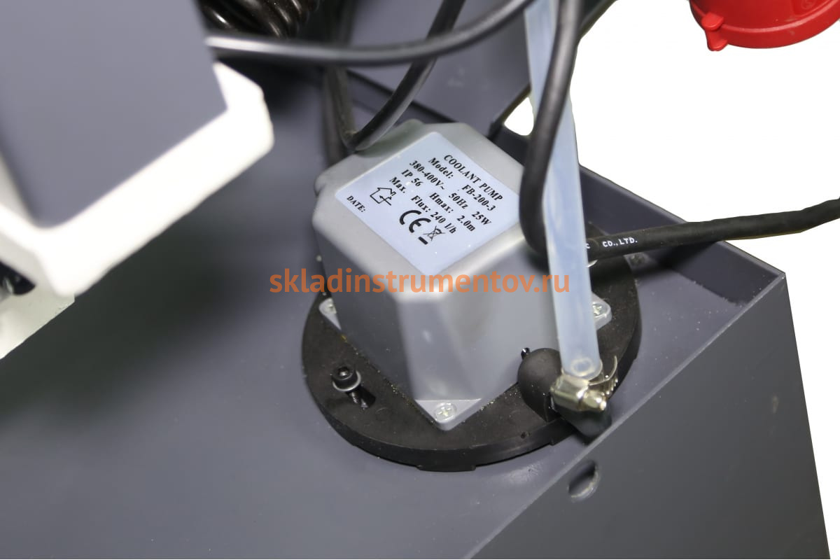 Боковой упор позволяет быстро выставить заготовку на нужный размер и получать детали с высокой степенью повторяемости. Станок оснащен системой подачи СОЖ с удобно расположенной емкостью и раздельным регулированием расхода охлаждающей жидкости.