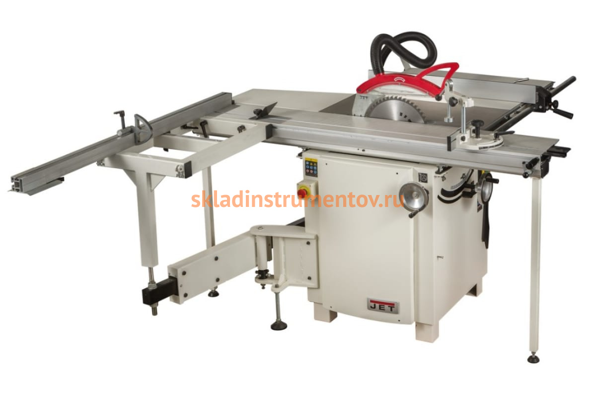 Циркулярная пила с кареткой JET JTS-1600-T 10000076T оборудована необходимыми элементами для проведения распиловочных работ различной сложности. Модель оснащена широким рабочим столом 760х350 мм с дополнительными удлинением и расширением 500х350 мм и 760х600 мм, которые позволяют распиливать детали значительных габаритов. Высокая точность изготовления деталей для пильного узла обеспечивает максимальное качество распиловочных работ. Основные детали выполнены из чугуна и стали, что обеспечивает необходимую жесткость и прочность каждого отдельно взятого элемента. Наличие каретки позволяет с высокой точностью работать с заготовками больших размеров, сохраняя прямой рез на всем протяжении пиления. Дополнительные опоры на расширениях делают конструкцию устойчивой. Имеется патрубок для пылудаления, а также чехол на диск для защиты оператора.