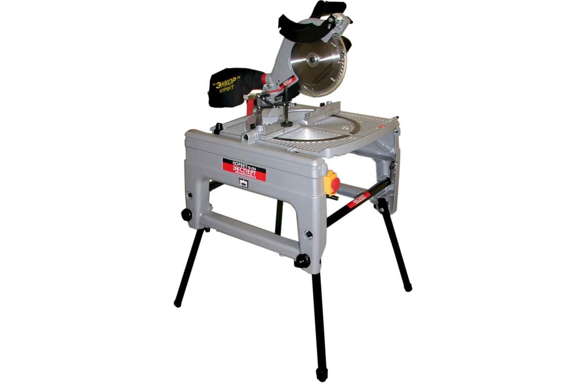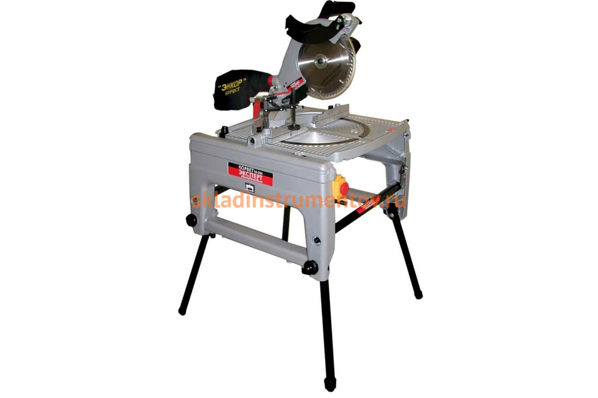 Универсальная пила Энкор Корвет Эксперт 10-254 91200 (27210) - инструмент с мощным асинхронным двигателем 1.8 кВт, предназначенный для комбинированного пиления заготовок из древесины, ламинта, алюминия и пластика. Сочетает в себе функции торцовочной пилы и пильного станка. Стол пилы - складывающийся, что позволяет размещать ее как на полу, так и на верстаке. Для надежной фиксации материала предусмотрена быстрозажимная струбцина.