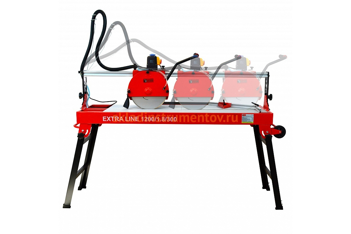 Отрезной станок Diam EX-1200/1.8/300 600104 подходит для резки всех видов плитки: натуральная, искусственная, керамическая, облицовочная, напольная и тротуарная. Улучшенная конструкция направляющей обеспечивает точный рез материала.