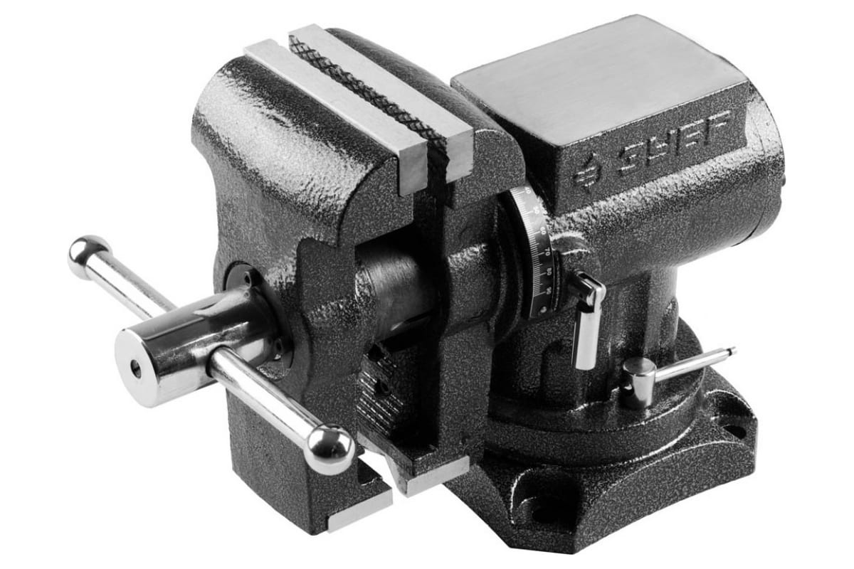 Многофункциональные слесарные тиски ЗУБР Эксперт-3D с поворотом в двух плоскостях, 125 мм 32712-125 - конструкция из чугуна для прочного прижима деталей с различным профилем (включая цилиндрический) с целью их сборки или механической обработки. Это многофункциональное приспособление, конструкция которого позволяет подобрать наиболее удобное для работы положение. Поворотное основание обеспечивает разворот корпуса на 360о по горизонтали, а подвижная планка помогает крепить деталь в вертикальной плоскости под углом от 0 до 360о.