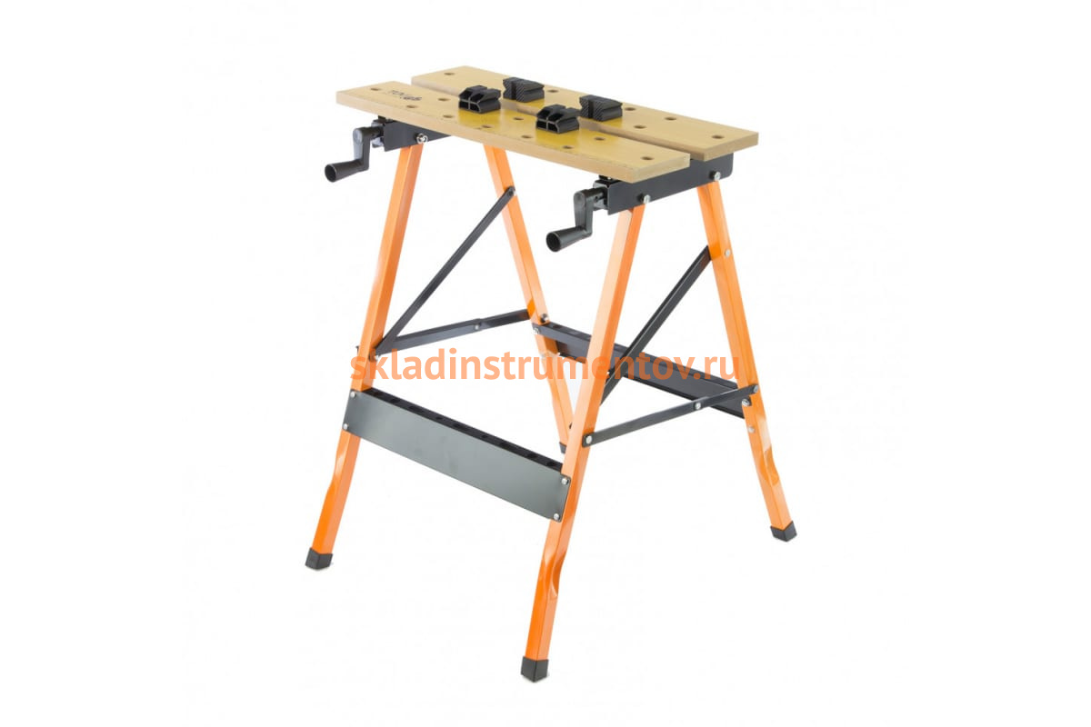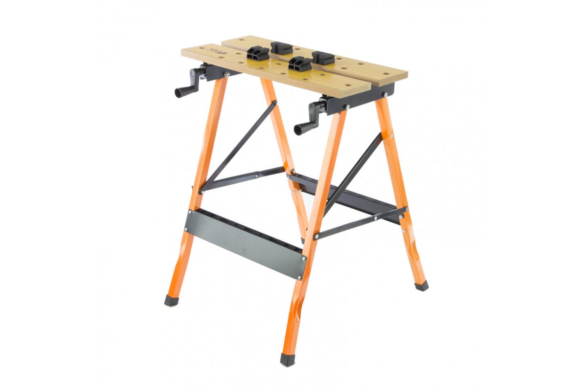 Верстак-тиски SPARTA 257055 применяется в небольших ремонтных мастерских. Столешница изготовлена из МДФ, что гарантирует устойчивость к нагрузкам до 100 кг. Благодаря складной конструкции изделие отличается удобством хранения и транспортировки. Тиски позволяют надежно фиксировать заготовки для их дальнейшей обработки.