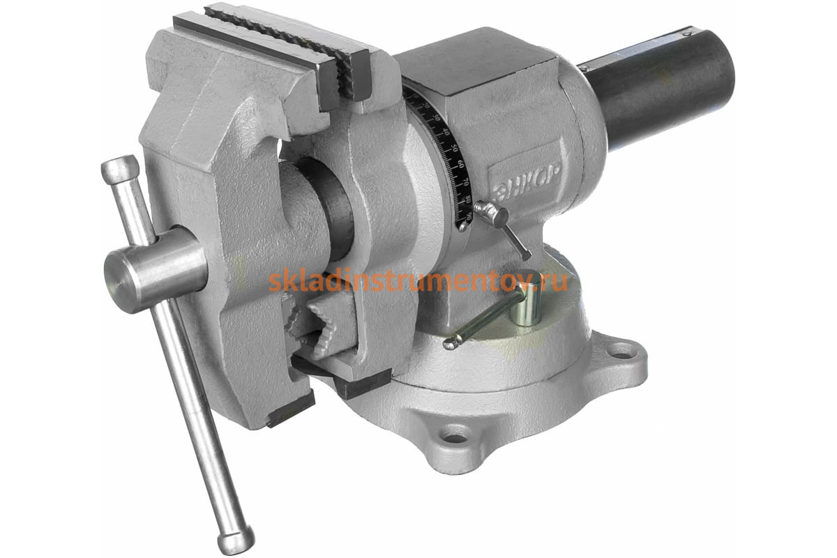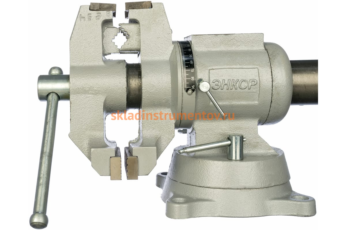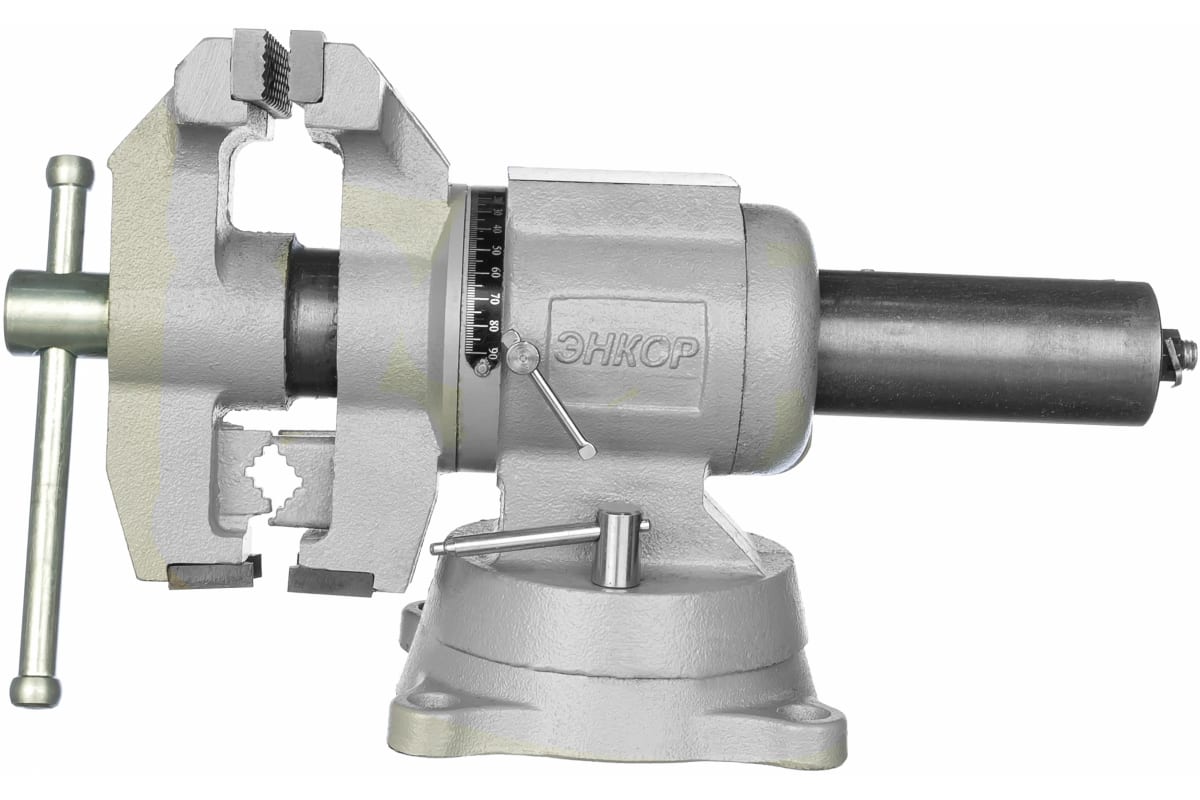 Поворотные слесарные тиски Энкор 100 мм 20088 являются вспомогательным приспособлением, которое используется при ремонте и обслуживании деталей. В конструкции предусмотрены три пары зажимных губок (плоские, V-образные, губки с насечкой), что позволяет удобно зажимать заготовки плоской, цилиндрической и круглой форм. Функция поворота зажимных губок в двух плоскостях дает возможность удобно выполнять сложные работы. Тиски имеют небольшой вес и легко переносятся к месту проведения работ.