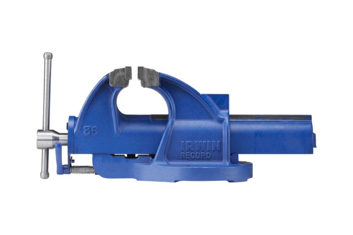 Тиски для слесарно-механических работ 150 мм Irwin T36 оснащены небольшой наковальней. Благодаря затяжному винту и удобной рукоятке со скользящим воротком значительно уменьшается количество сил и времени для затяжки губок.
