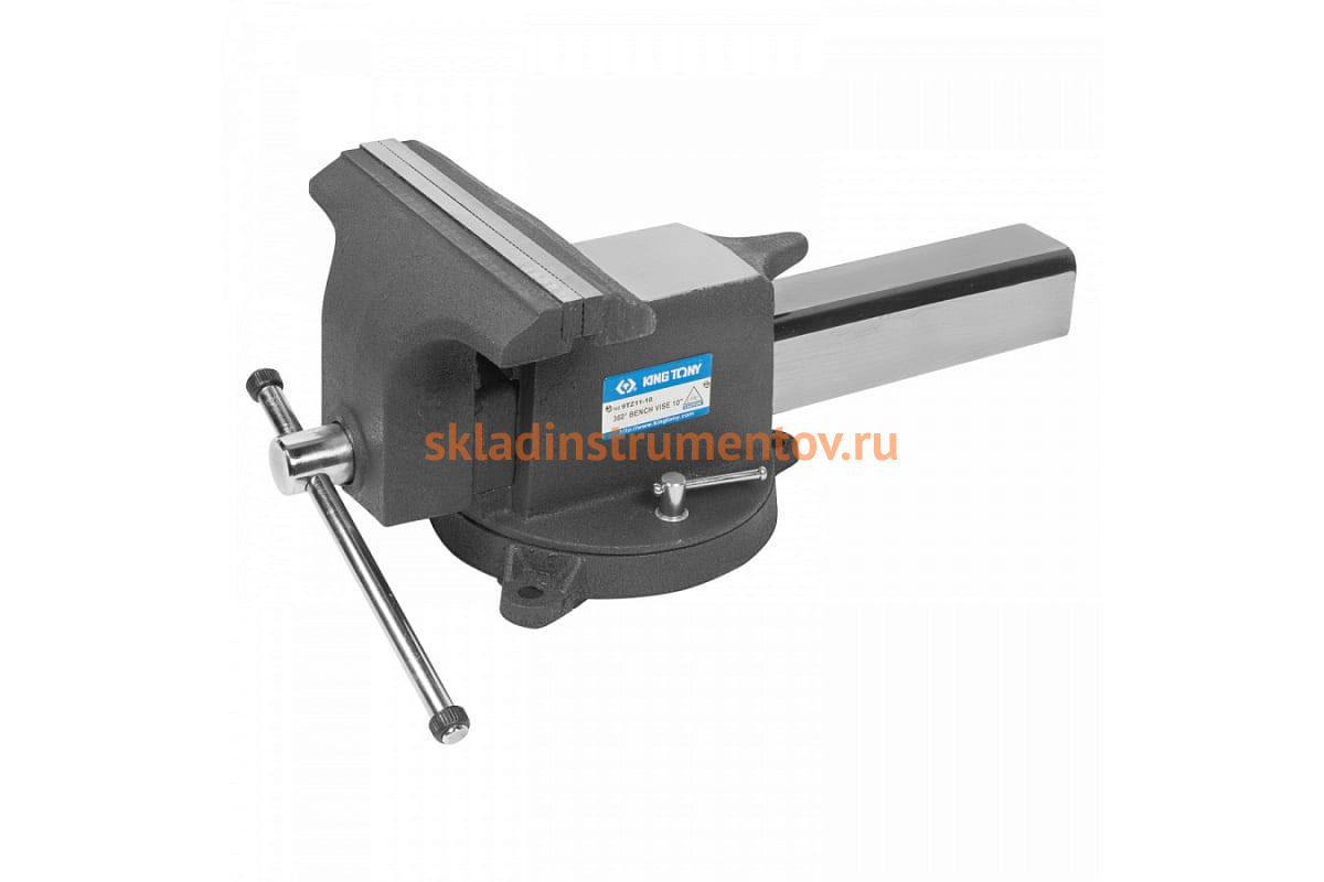 Слесарные тиски 300 мм KING TONY 9TZ11-12 оснащены дополнительной функцией поворота. Это позволяет обрабатывать деталь с различных углов даже в небольшом пространстве в гараже или мини-мастерской.