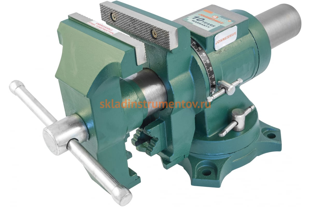 Слесарные поворотные тиски Jonnesway C-B5 125 мм 46293 имеет специальную конструкцию, которая позволяет поворачивать губки относительно друг друга до 360 градусов.