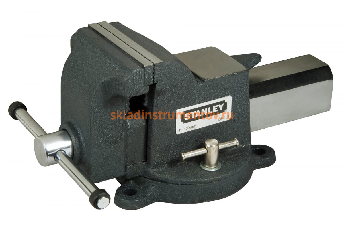Тиски для большой нагрузки Stanley MAXSTEEL 100 мм 13 кг 1-83-066 имею прочную чугунную конструкцию. Тиски прикручиваются болтами к поверхности, поворотное основание оснащено фиксацией. Изделие служит для закрепления деталей перед началом работы. Сила сжатия - 1400 кг.