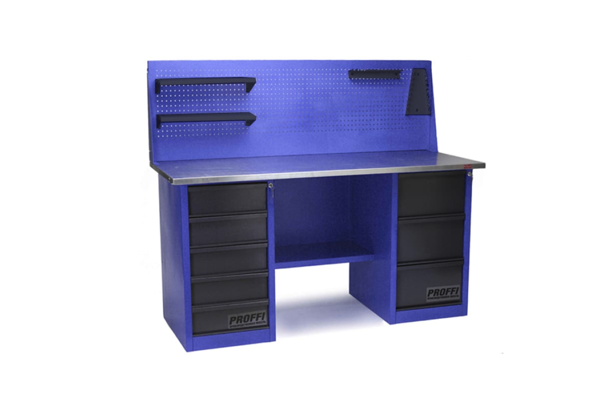 Верстак Верстакофф PROFFI 216 Д3 Д5 Э 101129 окрашен порошковой эмалью, которая предотвращает образование коррозии. Верстак представляет собой универсальное приспособление, которое предназначено для удобной организации рабочего места на производстве, в цехах и в учебных заведениях. Предусмотренные ящики позволяют всегда иметь под рукой необходимый инструмент.