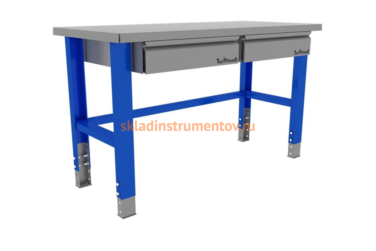 Промышленный металлический стол 1500 мм Верстакофф PROFFI 115002 имеет два выдвижных ящика для хранения инструментов и расходных материалов. Способен выдерживать нагрузку до 700 кг. Столешница выполнена из листовой стали толщиной 2 мм. Каркас сварной, изготовлен из профилированной листовой стали, толщина 1 мм. Засчет специальной конструкции опор можно проводить регулировку стола по высоте (800 - 1000 мм). Рекомендуется совместное использование стола и подкатных инструментальных тележек Верстакофф серии 795 (опционально).