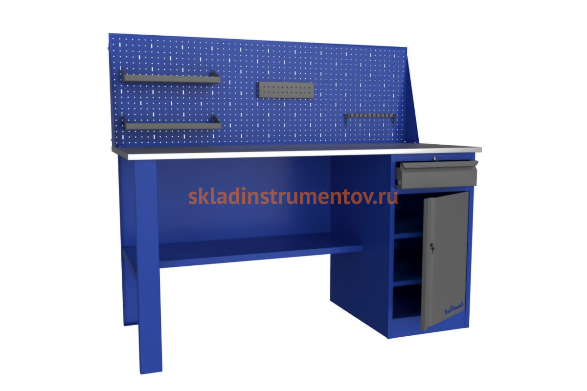 Верстак Верстакофф PROFFI 116 Т1 Э 101213 служит для организации рабочего места в гараже, мастерской, небольшом обучающем центре. Столешница изготавливается из фанеры и обшита оцинкованным металлом, что обеспечивает долговечность и устойчивость к высоким нагрузкам. Благодаря наличию экрана с перфорацией возможно размещение большого количества как объемного, так и небольшого инструмента.