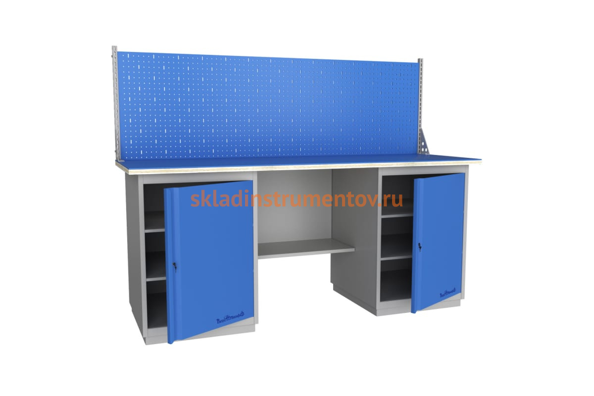 Верстак Верстакофф GRAND 2000 Т Т Э 117031 применяется в слесарной мастерской или производственном цеху в качестве специализированной мебели. Модель позволяет уверенно производить технологические операции, такие как опиливание, правку, резку, рубку сверление и многое другое. Столешница покрывается прочным листовым металлом толщиной 6 мм и прослужит длительное время. Верстак имеет значительный вес и устойчивую конструкцию для выполнения трудоемких работ. Стол оснащается двумя тумбами для хранения в необходимой очередности документов или мелких деталей. Экран с перфорацией позволяет встраивать дополнительные полки для рабочих приспособлений, чтобы держать их всегда под рукой.