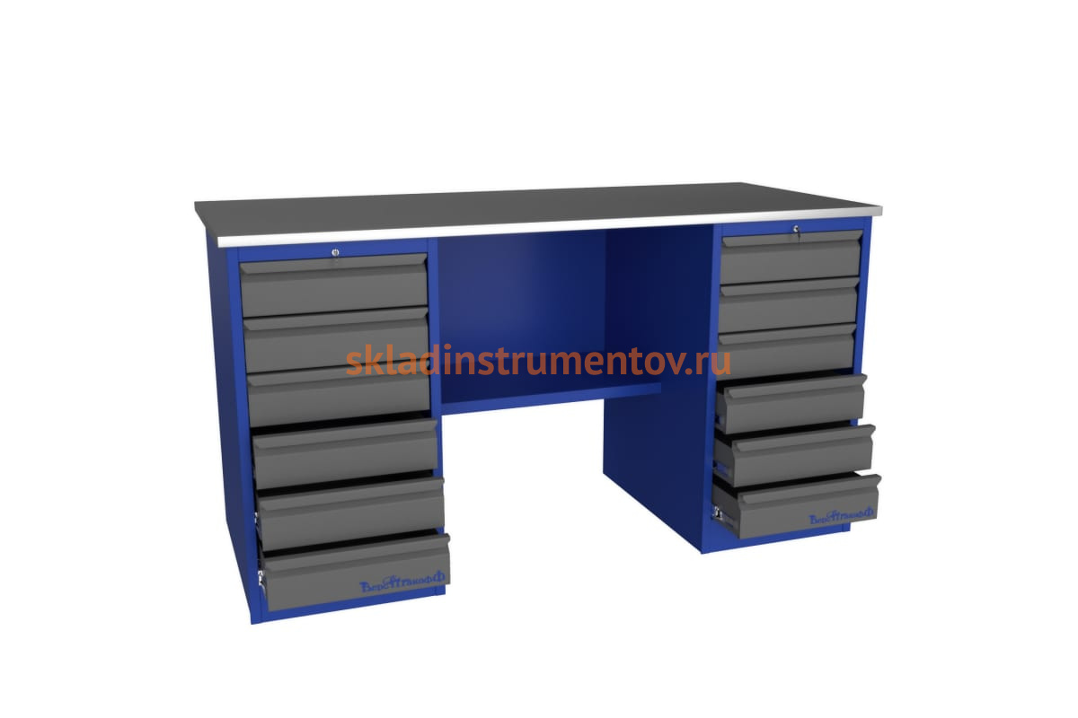Верстак Верстакофф PROFFI 216 Д6 Д6 101244 используется в гаражах, мастерских, обучающих центрах для организации рабочего пространства, а также для хранения различных инструментов и приспособлений. Столешница обшита оцинкованным металлом толщиной 1 мм, что обеспечивает износостойкость и долговечность. Благодаря двум тумбам конструкция устойчива на любой поверхности.