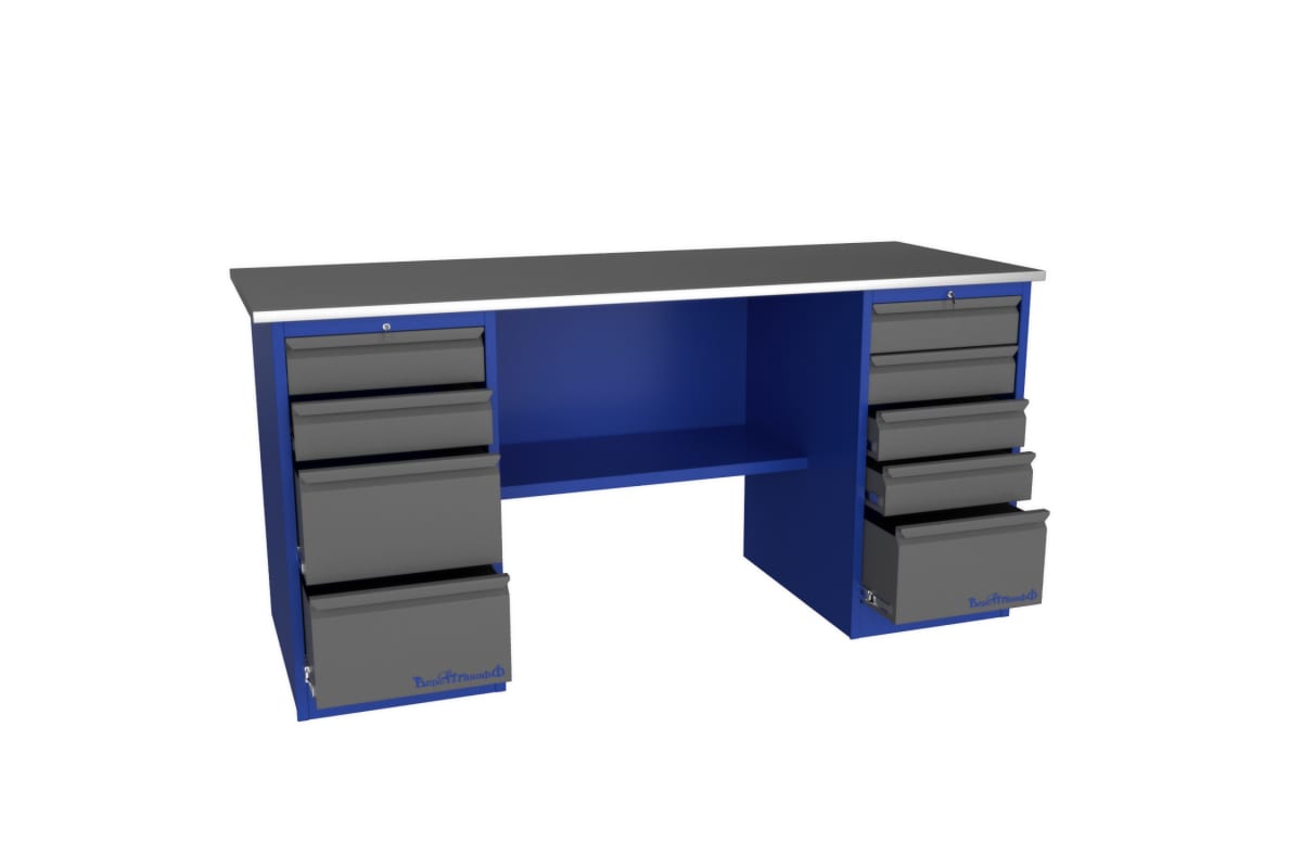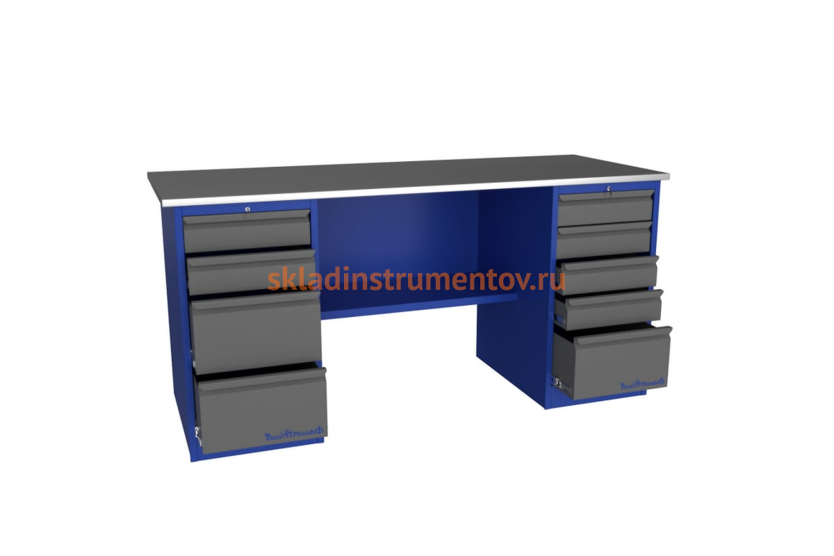 Верстак Верстакофф PROFFI 218 Д4 Д5 101271 представляет отличное решение для проведения столярных работ. Прочная столешница располагается на двух тумбах, между которыми находится нижняя полка. Большое количество ящиков для хранения инструмента позволяет создать оптимальную систему с удобным поиском. Благодаря металлическому покрытию столешницы, на верстаке можно выполнять большое количество различных работ. Каждая тумба оснащается индивидуальным центральным замком.