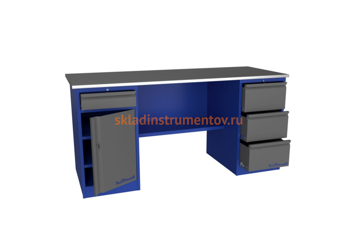 Верстак Верстакофф PROFFI 218 Т1 Д3 101253 разработан для проведения разнообразных столярных работ. Преимуществом изделия является наличие прочной столешницы, толщина которой составляет 24 мм. Рабочая поверхность покрыта миллиметровым листом металла. Три глубоких ящика позволяют расположить внутри необходимое количество рабочего инструмента с сохранением полной безопасности - каждая тумба закрывается на центральный замок. Конструкция обладает значительной прочностью и может использоваться в различных условиях.