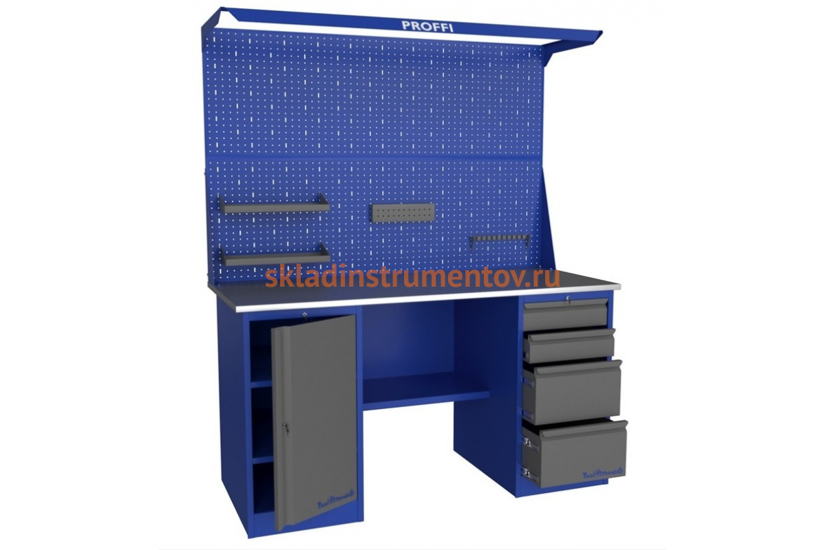 Верстак Верстакофф PROFFI v.2 216 Т Д4 Э2 101178 - производственная мебель для оснащения рабочих мест на предприятиях, автосервисах или мастерских. Модель оснащена двумя тумбами и экраном с освещением, что позволяет эффективно организовать рабочее место.