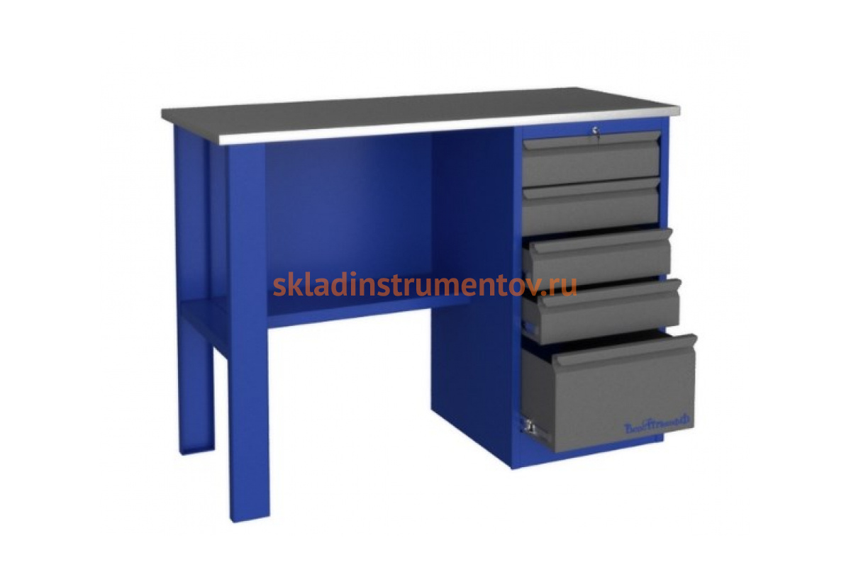 Пять ящиков обеспечивают упорядоченное хранение рабочего инструмента. Столешница выполнена из высококачественной фанеры и оцинкована.
