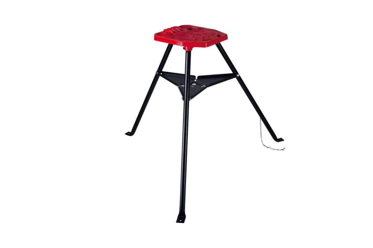 Трубный верстак-тренога SUPER-EGO без тисков 464000000 имеет крепления для различного инструмента, в том числе для трубных тисков (устанавливаются как параллельные, так и цепные). Модель оснащена алюминиевым основанием и тремя отверстиями для гибки заготовок.