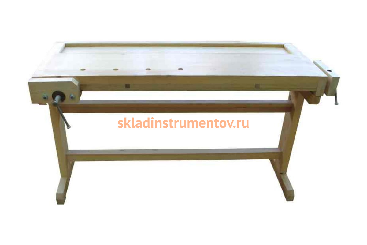 Комбинированный столярный верстак Верстакофф Учебный 111006 широко применяется для организации практических занятий в профессиональных училищах. Модель изготавливается из бука и сосны и представляет собой прочную конструкцию для обработки деревянных заготовок. Опора верстака усиливается деревянными клиньями, что гарантирует устойчивость несущей конструкции к нагрузкам. Для удобства пользователя тиски оснащаются длинными рукоятями. Червячные металлические винты заворачиваются легко и плавно.