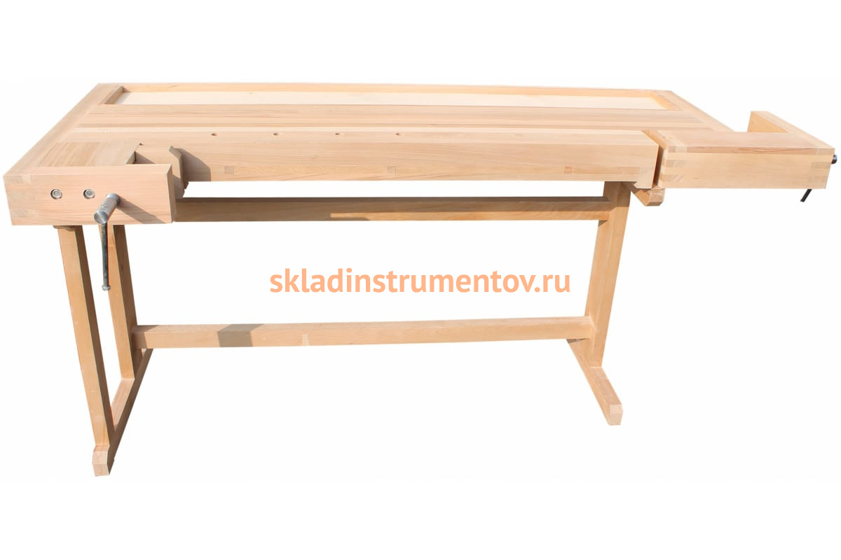 Столярный комбинированный верстак Верстакофф Люкс 111012 служит для организации рабочего места в столярной или учебной мастерской, а также в деревообрабатывающем цеху. Конструкция выполнена из двух материалов - бука и сосны. Так как бук более устойчив к износу, то все наиболее нагружаемые детали выполнены из него. Подверстачье данной модели легко разборное. Рабочая поверхность имеет размеры 2000х600 мм, что позволяет удобно обрабатывать крупногабаритные заготовки. Верстак оборудован лотком для удобного размещения мелких деталей и инструмента.
