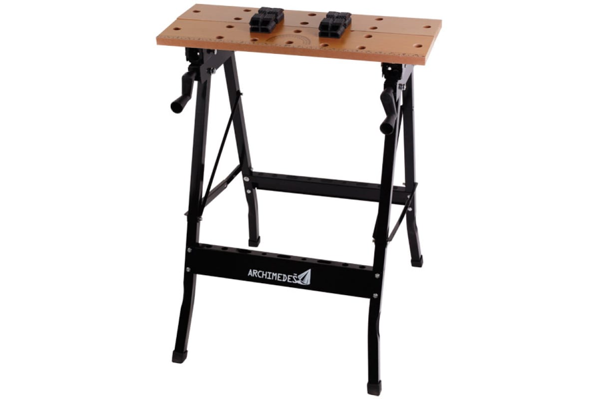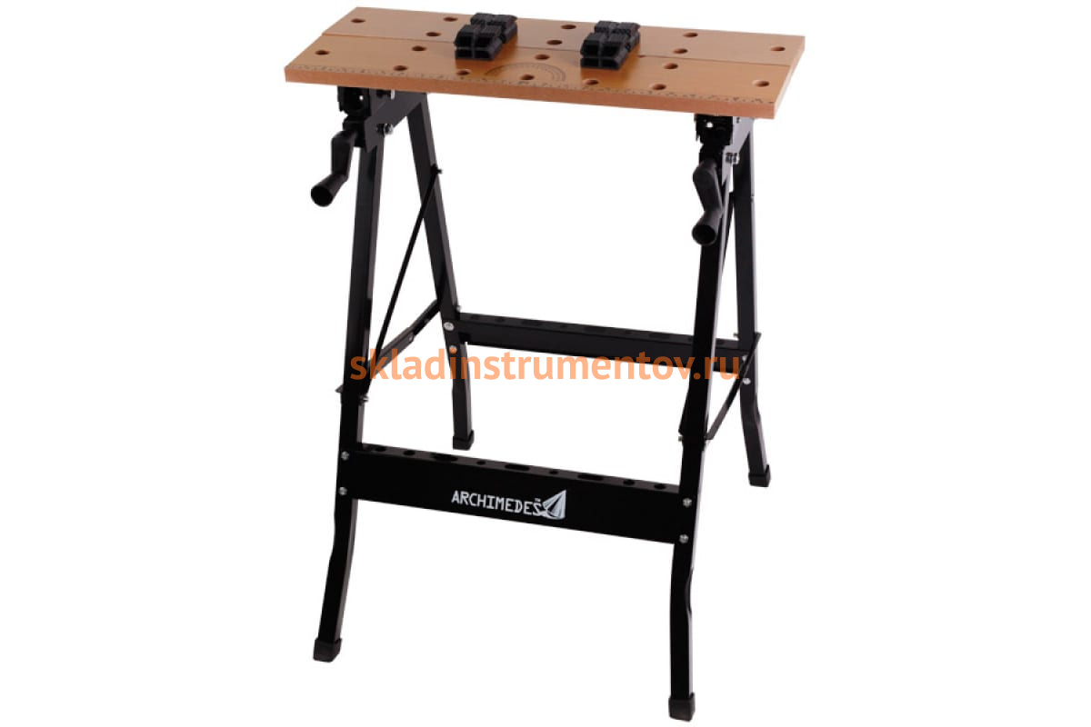 Складной верстак Archimedes 94336 предназначен для быстрой обработки деревянных заготовок. На столешнице имеется линейка и транспортир - упрощают разметку и последующий распил деталей.