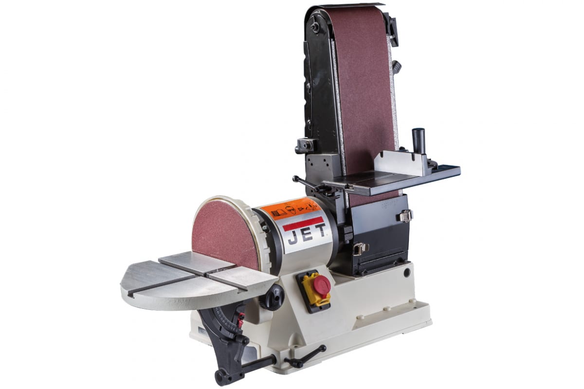 Тарельчато-ленточный шлифовальный станок Jet JSG-96 708595М оснащается двумя рабочими механизмами для достижения быстрого и качественного результата. Замена шлифовальных элементов происходит легко и быстро. В Т-образные пазы устанавливаются необходимые для работы упоры или устройство для круговой обработки детали. Высокая скорость движения оснастки гарантирует аккуратный съем верхнего слоя без потери времени. Эффективное пылеотведение осуществляется через патрубок диаметром 100 мм. Выходная мощность агрегата составляет 600 Вт.