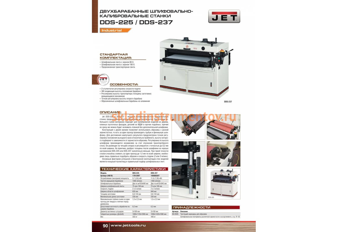 Двойной барабанный шлифовальный станок JET DDS-225 1791290Т предназначен для быстрой обработки широких деревянных поверхностей. Конструктивная особенность - наличие двух валов, которые могут отдельно регулироваться по высоте. Для подключения пылеотсасывающих систем предусмотрены два штуцера по 100 мм. Возможная погрешность при обработке (по ширине барабана) - всего 0.2 мм. Скорость подачи заготовки выбирается в зависимости от поставленной задачи и составляет 2 или 3 м/мин. Мощный двигатель гарантирует высокую производительность станка и стабильную эксплуатацию. Благодаря массивному основанию агрегат отличается устойчивостью к вибрации.