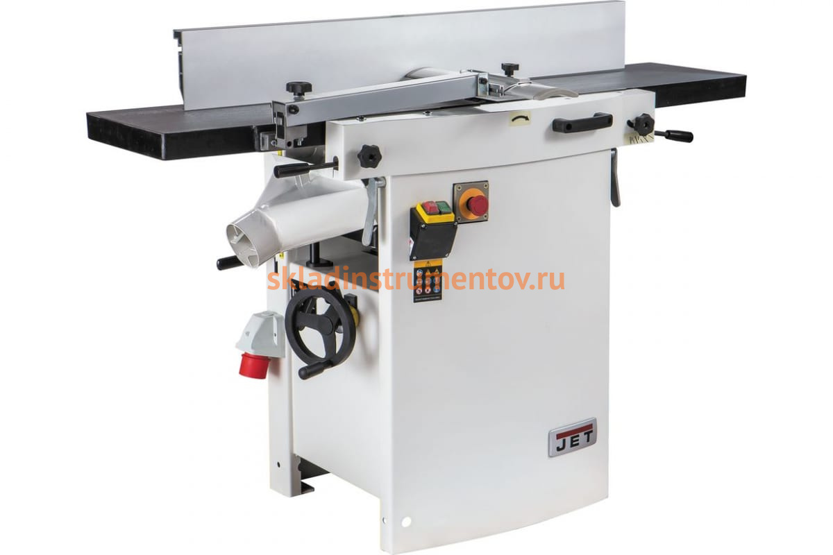 Фуговально-рейсмусовый станок Jet JPT-310 10000290T отличается функциональной конструкцией, которая позволяет легко и быстро переоборудовать модель под выполнение конкретной задачи. Верхняя часть представляет собой фуговальный узел с качественными чугунными столами и облегченным упором из алюминиевого профиля. При подъеме верхнего модуля оператор с удобством работает на нижней части станка - рейсмусе, а также получает доступ строгальному валу. Высота строгания регулируется при помощи вращающегося маховика. В случае необходимости вал подачи заготовки легко отключается.