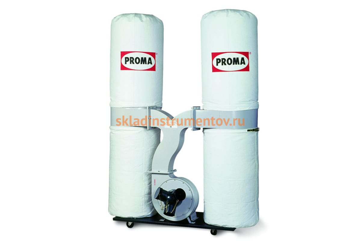 Стружкоотсос Proma OP-2200 25003003 оснащен двумя пылесборными мешками, что обеспечивает высокую производительность работ. Простой механизм замены и чистки мешков позволяет сэкономить время на подготовку установки к работе. Стружкоотсосы такой модели применяются в деревообрабатывающих цехах с большими нагрузками.