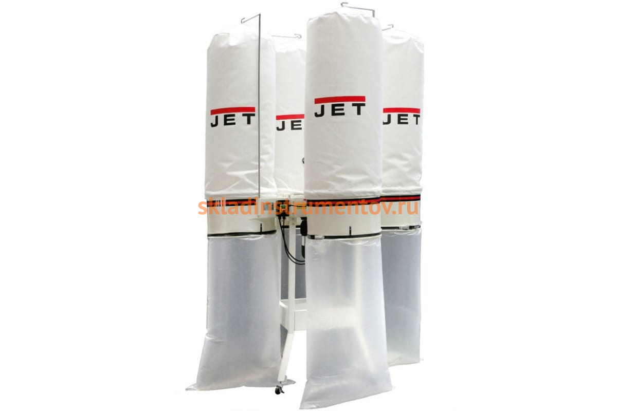 Вытяжная установка JET DC-5000 10001058T - мощное вытяжное оборудование с четырьмя пластиковыми мешками для сбора древесных отходов. Устройство широко применяется в профессиональной сфере. С помощью адаптера (4х100 мм) модель подключается к станкам, при этом на незадействованные патрубки надеваются заглушки. Во время работы с высокомощным оборудованием разветвитель снимается, тем самым предоставляется возможность использовать 180-миллиметровый коллектор. Тонкость фильтрации составляет 30 мкм. Объем пылесборных мешков - 210 литров, что способствует длительной работе без их очистки.