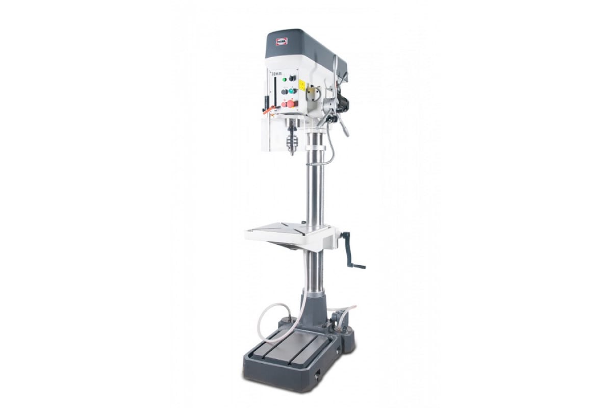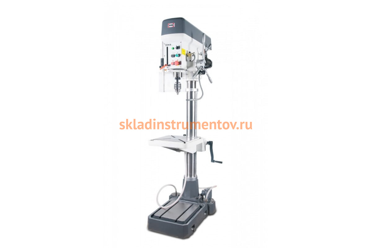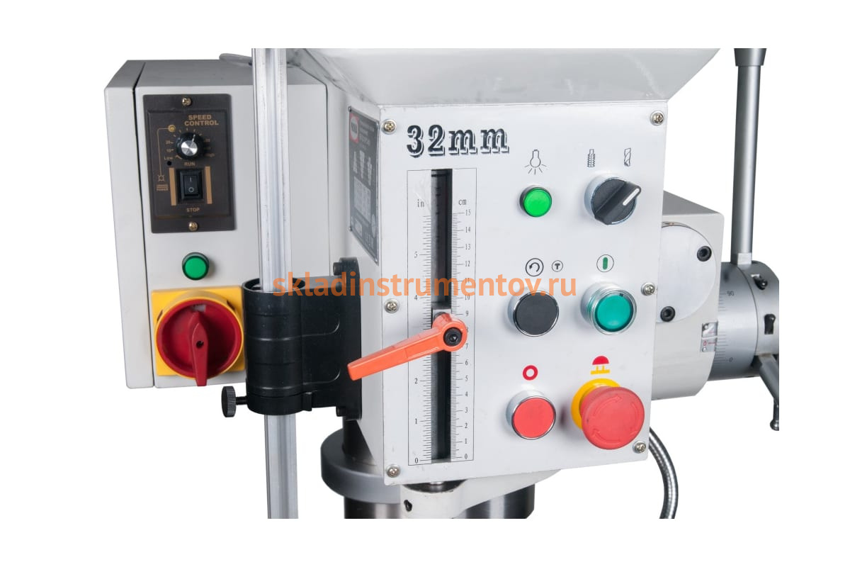Сверлильный станок PROMA BY-3220PC/400 25003220 используется для обработки металлических деталей большого размера. Наличие прочного и широкого основания обеспечивает устойчивость при работе. При сверлении заготовок малого размера используется стол. Автоматическая подача значительно упрощает серийное производство. Ограничение по диаметру резьбы: М24 для чугуна и М20 для стали. Прочная стальная колонна диаметром 100 мм обеспечивает жесткость конструкции и способствует передаче усилия от рукоятки к сверлу. Общая высота станка: 1855 мм.