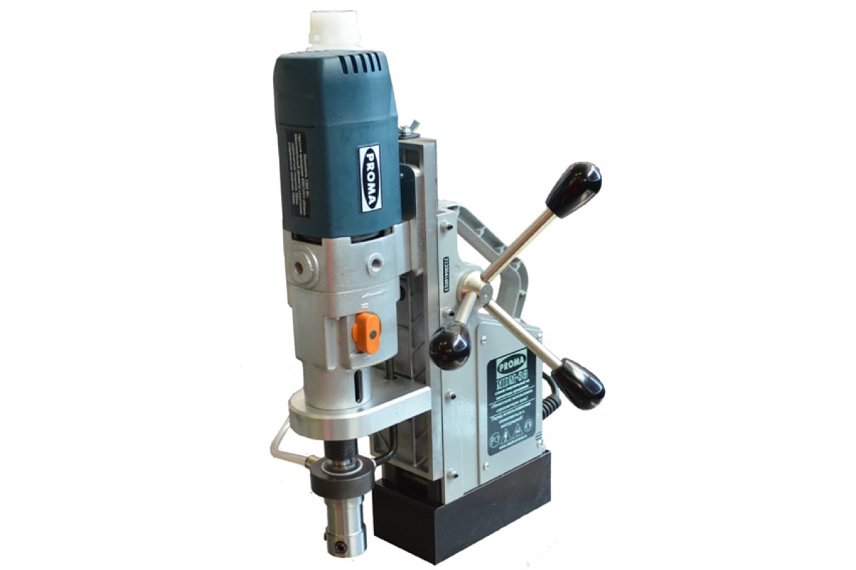 Сверлильный станок на магнитном основании PROMA MDM-38 0381000 позволяет получать аккуратные отверстия в металлических заготовках. Данная модель работает со спиральными и корончатыми сверлами для формирования отверстий диаметром 3 - 16 мм и 12 - 38 мм соответственно. Станок оснащен магнитной подошвой, прижимная сила которого составляет 20000 H, что обеспечивает прочное сцепление с поверхностью. Такой инструмент широко используется при проведении монтажных и строительных работ.