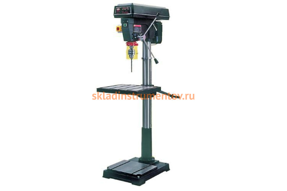 Напольный сверлильный станок Proma E-1720F/400 387103 применяется для сверления отверстий в металле до 25 мм диаметром. Чугунное основание станка делает его устойчивым. Удобная рукоять с тремя ручками - для опускания шпинделя. Кнопка экстренного отключения, отключает сразу весь станок при необходимости. Откидной пластмассовый щиток на патроне защищает оператора от вылета стружки. Стол имеет возможность наклона - для сверления отверстий под углом. Удобная регулировка глубины сверления с упором. Возможность выбора направления вращения шпинделя (реверс).